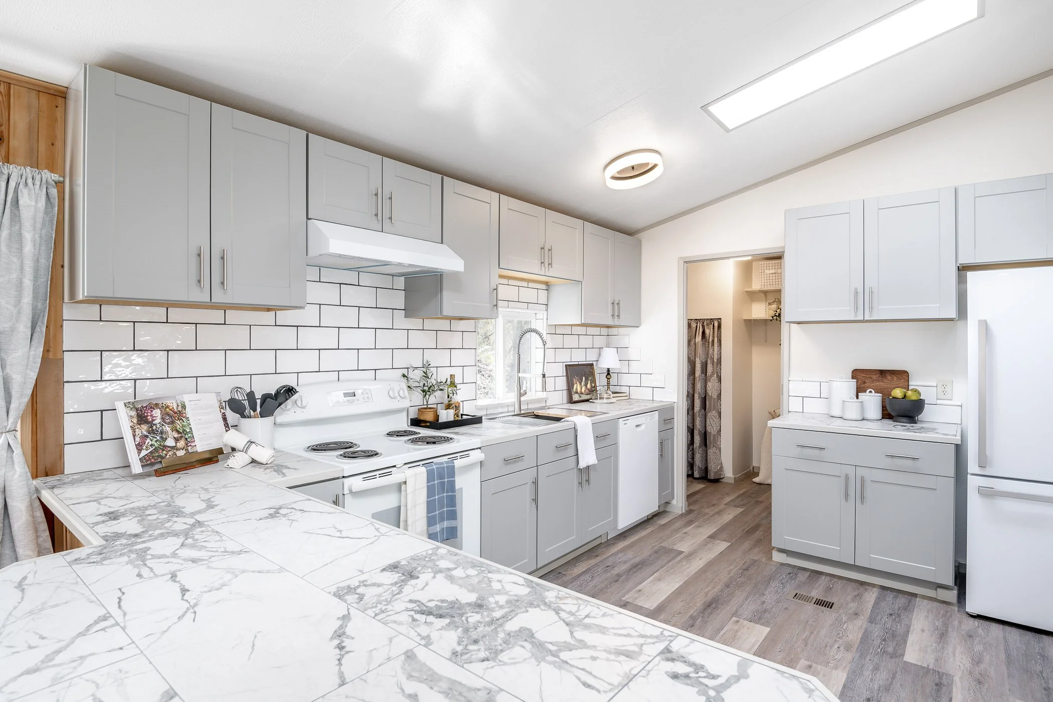 The open-concept great room with its inviting living and dining areas boasts a charming ship-lap wall accent, durable vinyl flooring, and soaring vaulted ceilings featuring a striking wooden beam accent. The chef’s kitchen is a true highlight, with a full-height tile backsplash, sleek grey shaker cabinets, and brand-new appliances—perfect for cooking and entertaining. The spacious master suite features a walk-in closet with a barn door entry, along with a newly remodeled 3/4 en-suite bath, including a tiled walk-in shower and a modern dual-sink vanity. Two additional generously-sized guest rooms provide plenty of space for family or visitors, along with a stylish full guest bath. Throughout the home, a whole-house stereo system enhances the ambiance. Outside, the large detached 2-car garage offers ample storage, and there’s plenty of space for RV parking. Enjoy the surrounding territorial views and the privacy that comes with a property of this size. This home is the perfect blend of modern updates and serene country living!