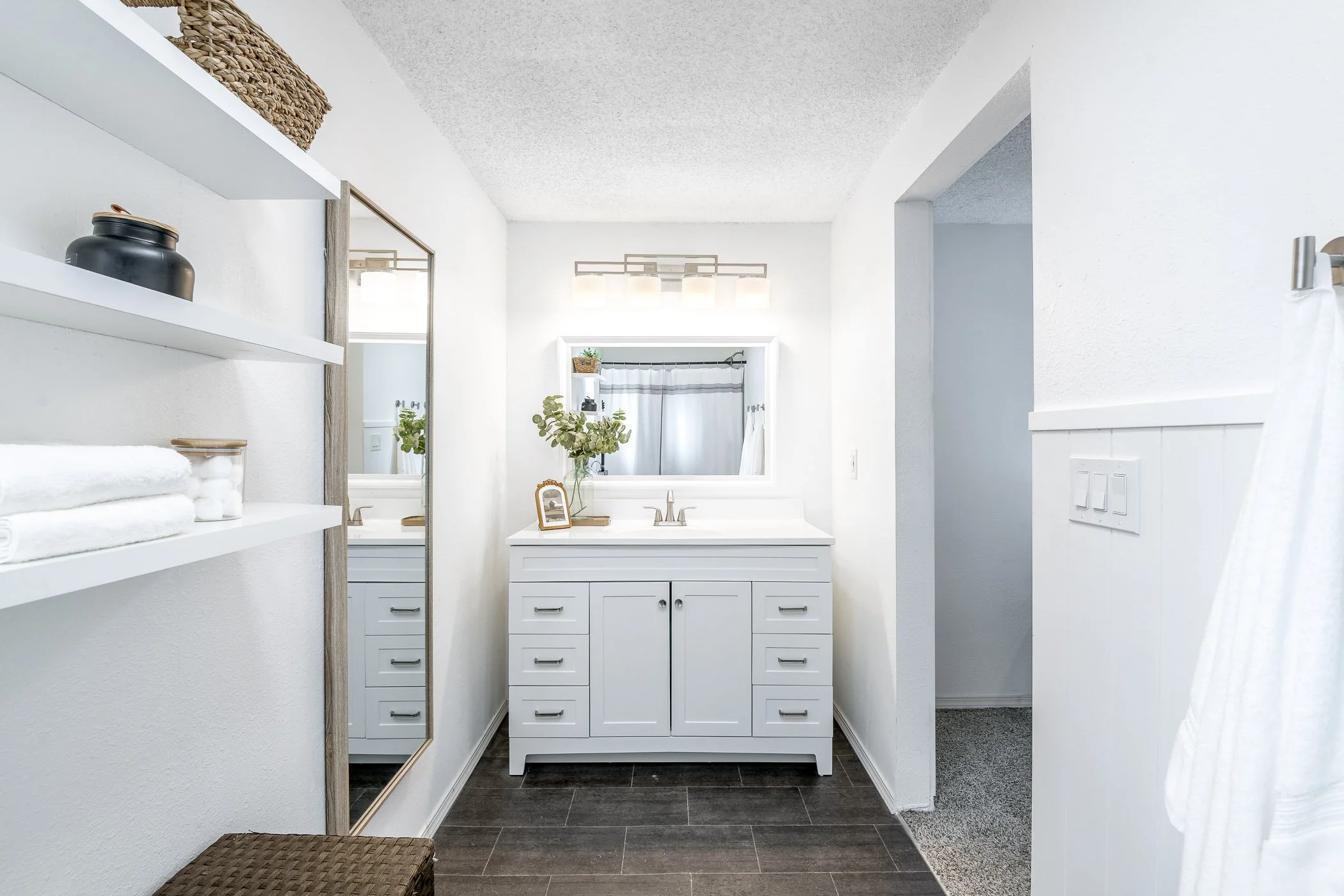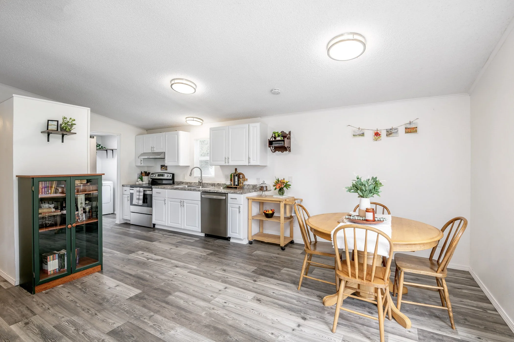 Enjoy new flooring in the kitchen and living room, creating a fresh, modern feel throughout. The bright living room showcases vaulted ceilings and a stunning wall of windows that fills the home with natural light. The kitchen features white cabinetry, stainless steel appliances, ample counter space, and a eat-in dining area—perfect for everyday living. The spacious primary suite offers a spa-like ensuite bath with barn door entry, while two additional guest bedrooms and a full guest bath provide flexibility for guests, home office, or hobbies. Step outside to a HUGE park-like yard with an added back deck, fresh landscaping, and plenty of space for entertaining, relaxing, and outdoor enjoyment. Conveniently located just minutes from shopping, dining, schools, and entertainment—this home has it all!